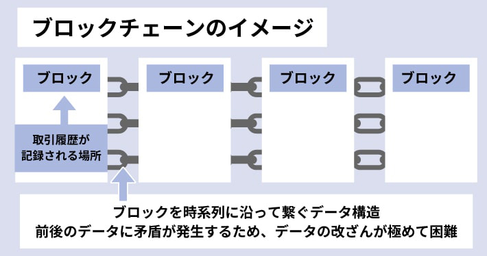 さらに、ブロックには暗号技術が使われており、一度書き込まれたデータは変更や破損が難しい構造になっています。