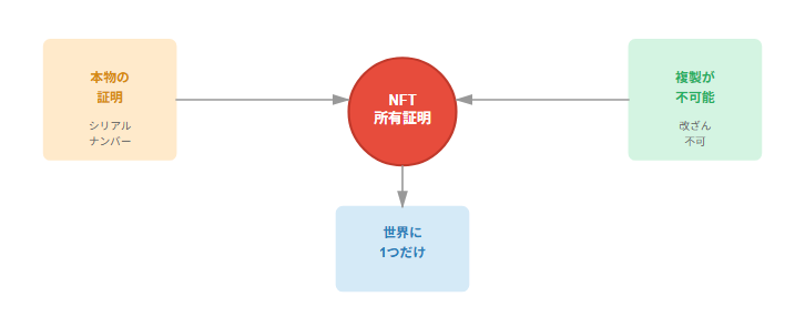 しかしNFTなら「本物の所有権を証明する証書付き」なので、複製・改ざんが不可能です。