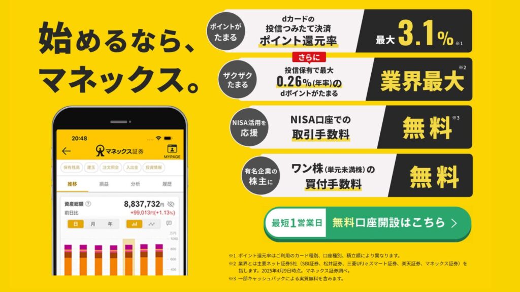 ポイント還元率を重視するなら、マネックス証券が最適です。